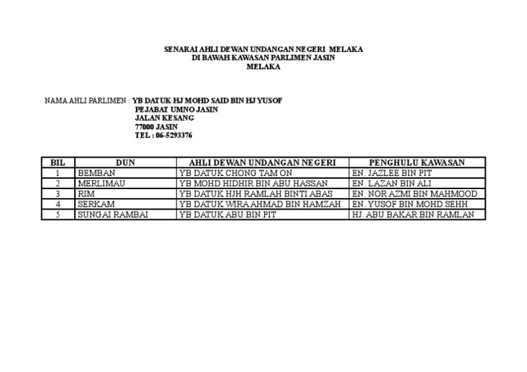 Senarai Ahli Dewan Undangan Negeri Melaka Pdf